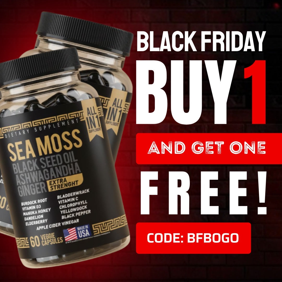 BlackGold Sea Moss Capsules deliver a complete daily wellness boost in one simple formula. Each capsule combines wildcrafted Irish Sea Moss with powerful botanicals and essential nutrients to support energy, skin health, digestion, immunity, and hormone balance without juggling multiple supplements