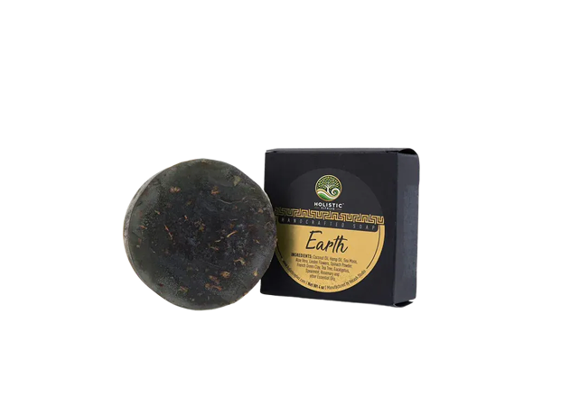 This artisan-crafted bar features a harmonizing mix of wildcrafted sea moss, tea tree oil, and rosemary—perfect for those seeking a clean, crisp, and rejuvenating wash. Infused with plant-based oils, mineral-rich clay, and nutrient-dense greens, Earth offers a balanced cleanse for all skin types.