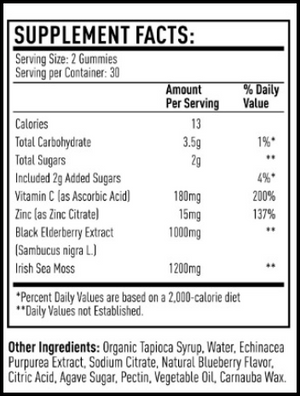 Organic Tapioca Syrup, Water, Echinacea Purpurea Extract, Sodium Citrate, Natural Blueberry Flavor, Citric Acid, Agave Sugar, Pectin, Vegetable Oil, Carnauba Wax