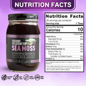 Wildcrafted Sea Moss, Spring Water, Organic Agave, Lime, Elderberry Extract, Graviola (Soursop) Extract, Dragon Fruit Extract, Burdock Root, Bladderwrack, Strawberry Extract, Banana Extract, Pineapple Extract, Blue Spirulina, Mango Extract, Papaya Extract, Ashwagandha, Reishi, Maca Root
