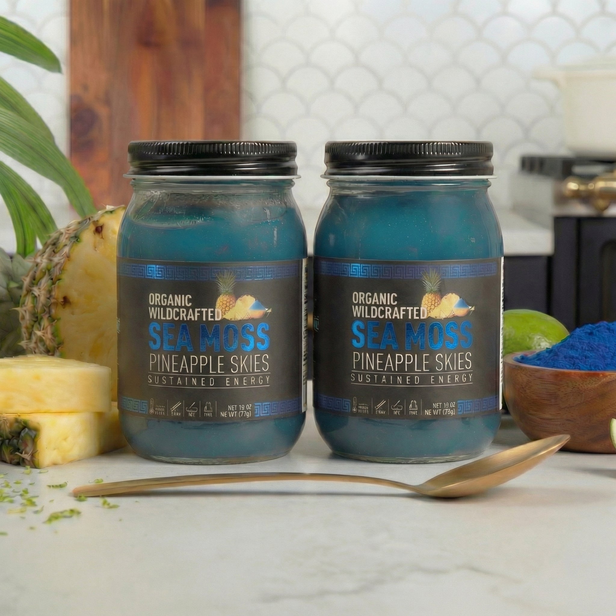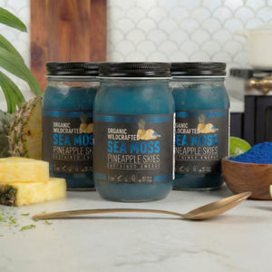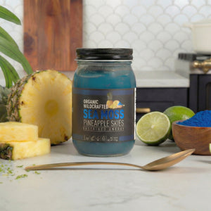 A cool tropical blend of wildcrafted sea moss and juicy pineapple, elevated with blue spirulina for a vibrant ocean hue. Made fresh weekly for peak purity and taste, this silky, island-inspired gel is lightly sweetened with organic agave and balanced with lime and spring water — a naturally sweet and refreshing escape in every spoonful.